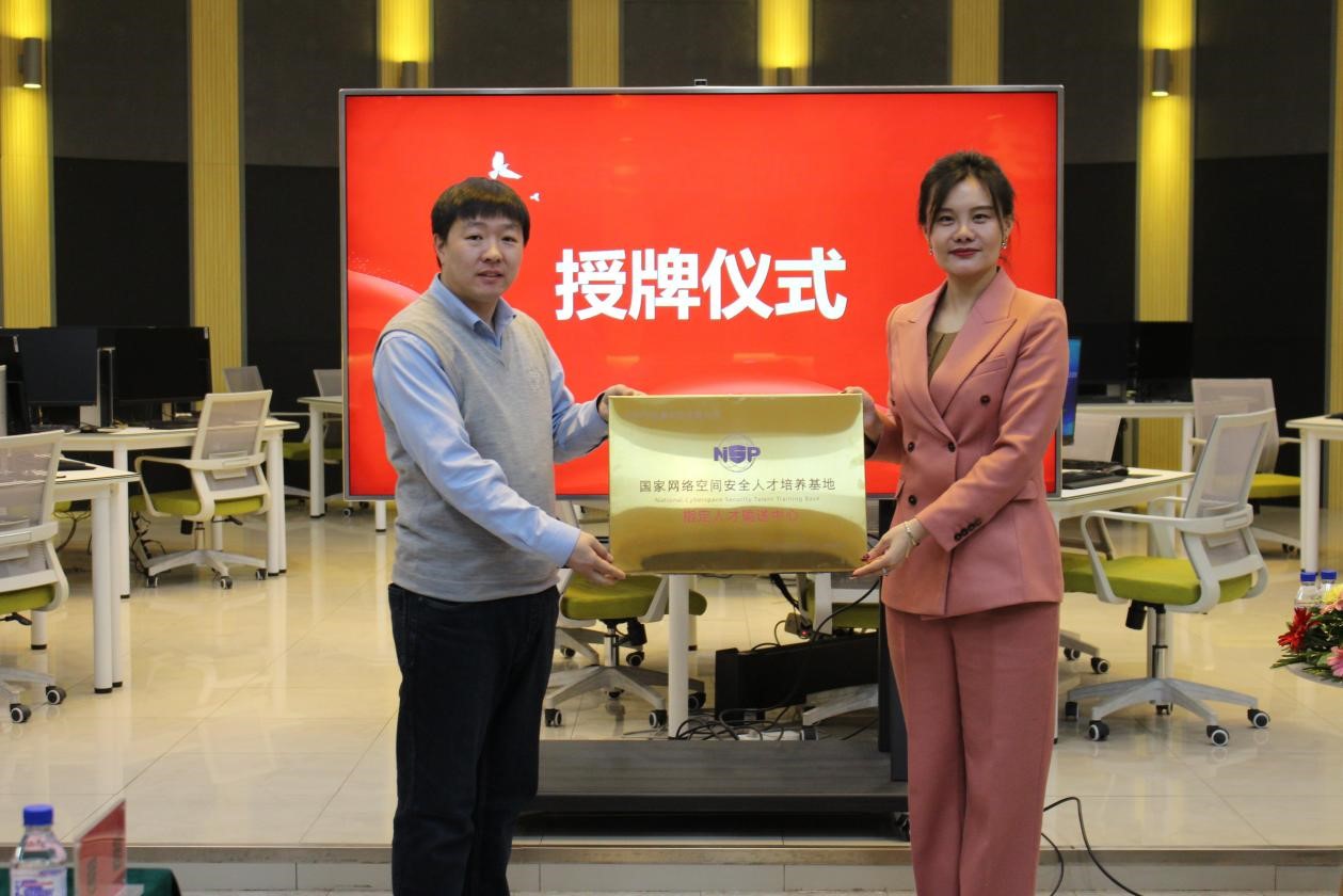座谈结束后,长春市启晨科技有限公司与长春汽车工业高等专科学校在全体参会嘉宾的见证下,进行了网络与信息安全教育教学互动体验中心签约授牌仪式和企业对学校教学支持捐赠仪式。