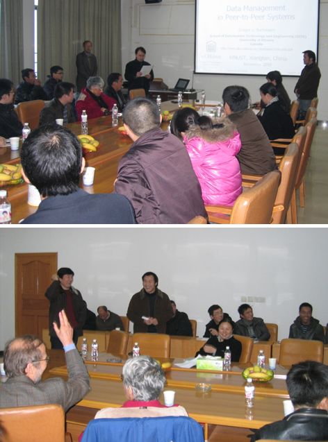 Gregor v. Bochmann教授作了题为 “Data Management in Peer-to-Peer Systems” 的报告,探讨了P2P系统中的信息存储和检索的研究热点,涉及可靠性、分布式搜索和负载均衡等方面。Bochmann教授介绍了基于哈希表的信息检索、线性搜索、多维度检索(如基于地理空间)和基于通用矩阵空间的信息检索,还进一步阐述了P2P中的诸如文件共享和视频流等的具体应用的现状等。