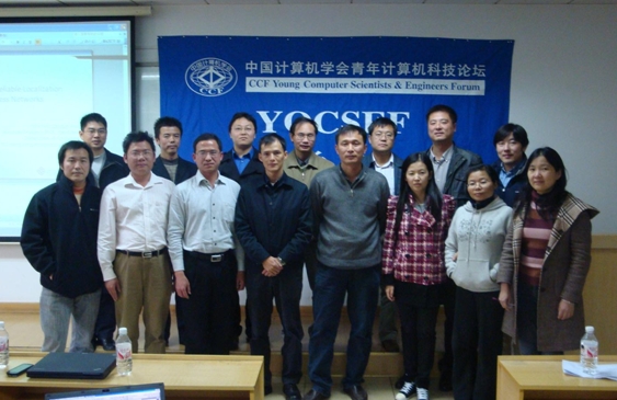 2010年10月29日下午两点开始,CCF YOCSEF长沙在中南大学科教南楼304室举行了题为“网络与信息安全”的学术报告会。YOCSEF长沙AC委员、中南大学王国军教授,与YOCSEF长沙主席、国防科技大学董威副教授共同主持了本次报告会。特邀讲者分别是香港理工大学副教授肖斌博士和清华大学副教授蒋屹新博士。两位讲者都做了精彩的阐述,并在和与会者的互动中深入地交流和探讨了网络与信息安全的相关问题。参加本次报告会的还有YOCSEF长沙AC委员王东、张连明、李登,委员邓晓衡、王正飞,学术秘书齐芳、李暾,特邀嘉宾香港理工大学王志君博士、王丹博士,以及其他各界人士、中南大学信息院青年老师、本科生、研究生等共百余人。