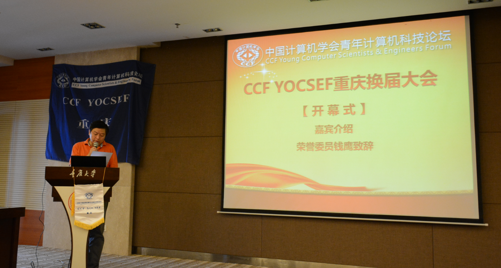 6月11日下午,CCF YOCSEF重庆在重庆大学主教学楼506会议室举办了2017年换届大会暨重庆大数据与智能计算青年学者论坛。 会议合影 CCF YOCSEF总部学术秘书林俊宇博士、成都分论坛副主席巫家敏、长沙分论坛副主席肖晟、合肥分论坛学术秘书陈学三、武汉分论坛副主席王勇,济南分论坛副主席史玉良、广州分论坛副主席黄琼,深圳分论坛学术秘书王毅,西安分论坛学术秘书王一川、朱磊出席了本次换届大会。CCF YOCSEF重庆2016-2017年度及2017-2018年度主席刘铎、2017-2018年度副主席章乐、侯昭宜、郭松涛、学术秘书曾骏、郭坤银,重庆分论坛AC委员及委员等50余人参加了本次活动。重庆分论坛现任主席刘铎主持了本次大会。 换届大会现场 首先由重庆分论坛第九任主席及荣誉委员钱鹰致欢迎辞,随后由总部学术秘书林俊宇进行CCF YOCSEF文化培训。他着重介绍了YOCSEF“承担社会责任,提升成员能力,促进成员合作、探索新的机制”的主旨。 钱鹰致欢迎辞 林俊宇做 YOCSEF文化培训 随后重庆现任主席刘铎介绍了CCF YOCSEF条例并进行工作指南培训。 刘铎介绍CCF YOCSEF条例并进行工作指南培训 随后刘铎介绍了2016-2017年度重庆分论坛的主要工作,回顾了过去一年来重庆分论坛举办的活动,其中包括“创新创业——路在何方”特别论坛,生物信息计算与医学交叉论坛,“军民融合深度发展”特别论坛等。同时该年度发展新委员35人,并对委员档案信息进行整理核实。还推出了YOCSEF重庆手册、微信公众号。扩大了YOCSEF重庆的影响力,得到了企事业单位及社会各界的认可。 刘铎进行2016-2017年度工作总结 接下来进行了新老主席会议成员交接仪式。并由荣誉委员钱鹰为新任主席会议成员颁发了证书。在总部学术秘书林俊宇的带领下新任主席会议成员进行了宣誓仪式。 林俊宇和现任主席刘铎进行交接仪式 CCF YOCSEF重庆2017-2018主席会议成员合影 CCF YOCSEF重庆2017-2018年度主席会议成员宣誓 随后由刘铎代表新一届主席会议成员介绍2017-2018年度工作设想。刘铎强调了CCF YOCSEF重庆要打造自己的特色。同时在委员的发展上要继续增加非学术界的委员,包括产业界和政府的专业人士。 刘铎介绍2017-2018年度工作计划 随后在刘铎的主持下大会进行了荣誉委员增选。荣誉委员候选人杨艺和陈乙雄进行了竞选发言。之后现任AC委员对两位候选人进行了提问。两位候选人都表示将继续关注重庆分论坛的发展,并继续贡献自己的力量。最后两位候选人以全票通过成为荣誉委员。 杨艺进行发言 陈乙雄进行发言 随后重庆分论坛现任AC委员进行了述职及自评,各个委员总结了上一年度的主要工作,并对2017-2018年度的工作进行了展望。 副主席昭宜进行述职 随后由荣誉委员钱鹰为荣誉委员,AC委员以及优秀AC委员颁发了证书,由总部学术秘书林俊宇为优秀委员颁发了证书。最后由钱鹰为兄弟分论坛的嘉宾送上了纪念品。 AC委员合影 荣誉委员合影 优秀AC委员合影 优秀委员合影 兄弟分论坛嘉宾合影 随后大会进入第二阶段CCF YOCSEF重庆委员秀暨“重庆大数据与智能计算”青年学者论坛。首先由重庆大学计算机学院院长沙行勉致欢迎辞。然后重庆分论坛的委员将自己的工作进行展示。 重庆大学计算机学院院长沙行勉致辞 重庆分论坛委员严开进行工作展示 重庆分论坛委员唐亮进行工作展示 在大会最后,总部学术秘书林俊宇,各兄弟分论坛参会嘉宾以及重庆分论坛的各位委员一起对重庆分论坛的进阶之路发表了自己的意见。最后刘铎对大会进行总结,大会圆满成功。