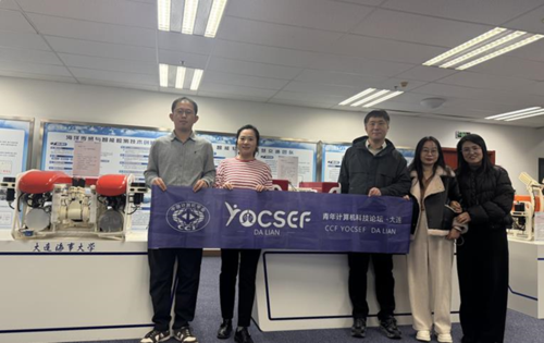 CCF YOCSEF大连25-26年度技术论坛“大模型时代下智慧海洋技术变革”临近,CCF YOCSEF大连学术委员李想、王辉兵、孙丽媛、刘明剑、徐晓璐,于2025年11月8日前往大连海事大学就论坛相关筹备工作进行讨论,并在大连海事大学智慧海洋相关平台进行实地调研活动。本次筹备会与调研活动为坛议的顺利召开提供了宝贵的经验,调研结果也为论坛议题提供了有理有据的数据支撑。