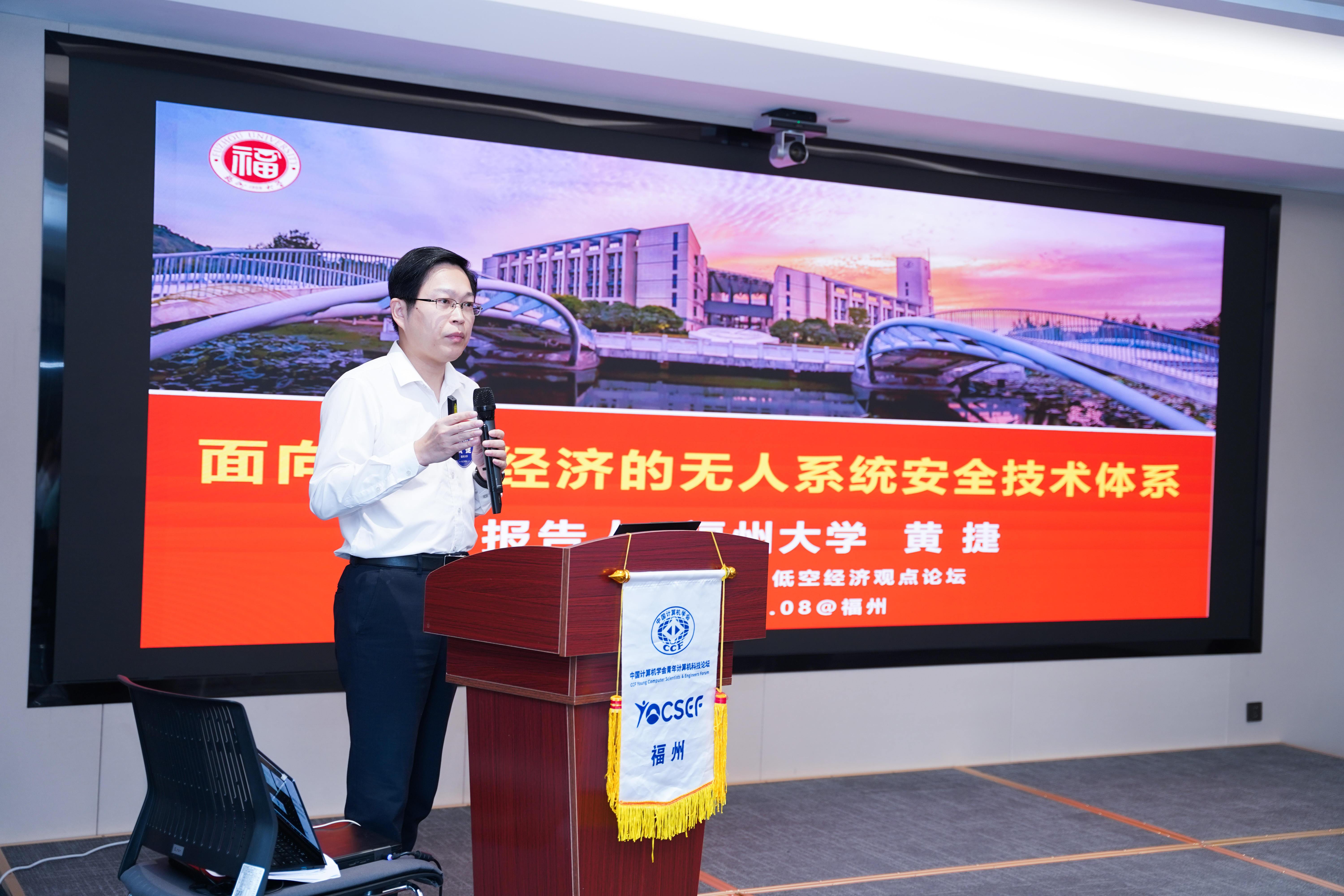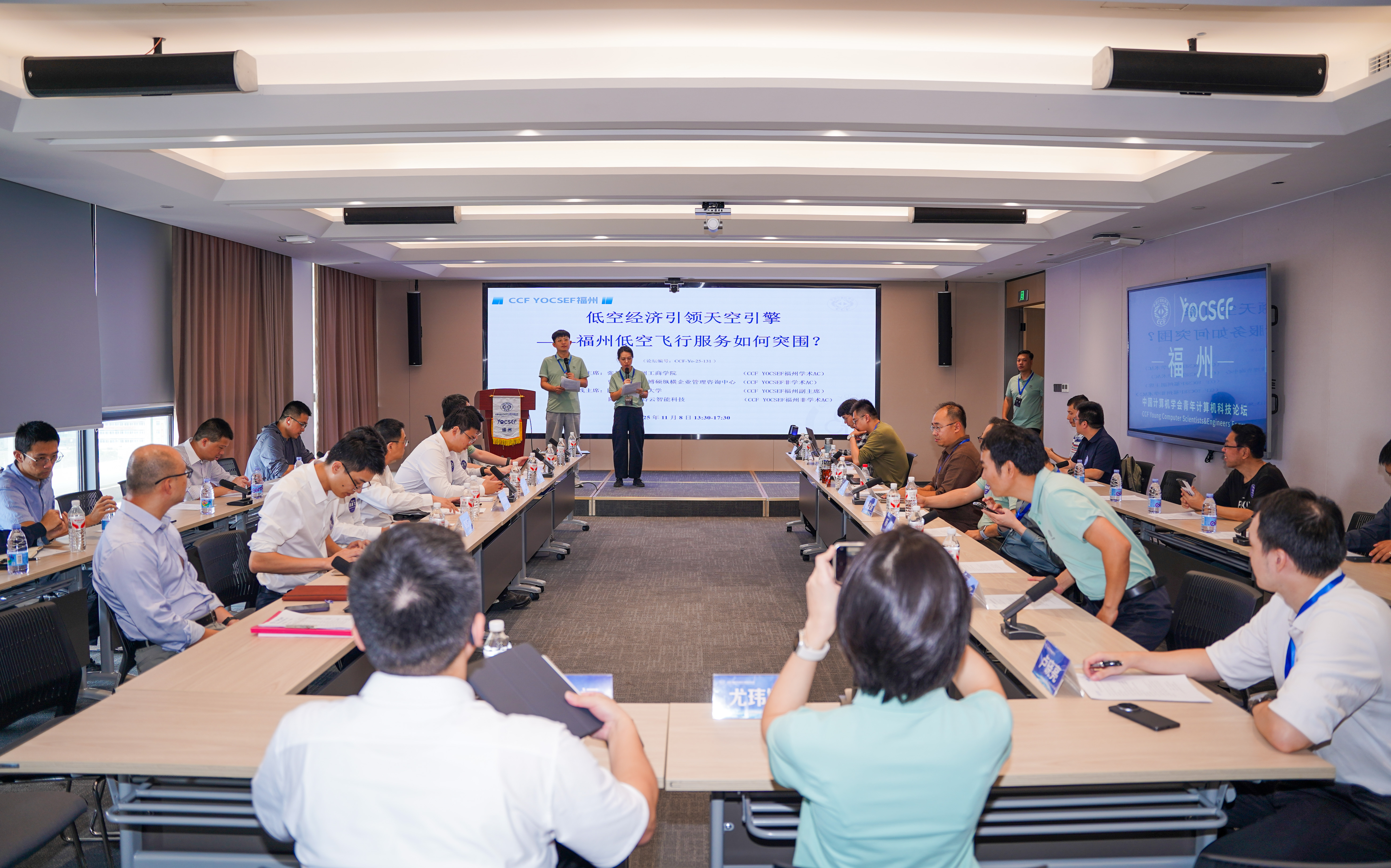 2025年 11 月 8 日下午,CCF YOCSEF 福州观点论坛“低空经济引领‘天空引擎’——福州低空飞行服务如何突围?”在福建省大数据集团大数据科技园成功举办。来自高校、科研院所、企业及政府相关部门的 50 余位专家学者,围绕福州低空经济的安全技术体系、数据驱动路径、法律合规挑战、空域管理突破、产业实现路径与商业模式创新等核心议题展开深度研讨与思辨。