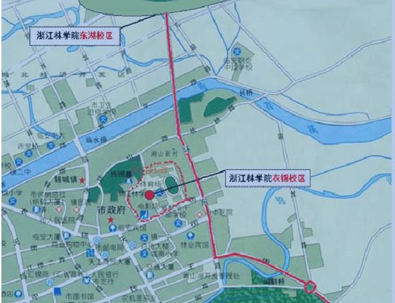 进入浙江省林学院校园后请按照沿途路牌指示到会场。杭州至浙江林学院交通示意图: