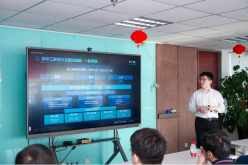 在随后的分享环节,新华三技术有限公司黑龙江代表处教育金融行业技术部负责人梁宏凯分别围绕新华三全产业链布局、新华三教育行业“一体两翼”整体战略等方面展开分享,系统展现了企业在“云-网-安-算-存-端”全产业链的业务覆盖,以及智能体技术从“能对话”到“能办事”的核心突破,并结合实际案例呈现了面向多场景的数字化解决方案与实践成果。