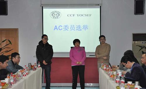 2013年1月13日下午3:30,CCFYOCSEF合肥在中国科学技术大学计算机学院学术报告厅召开分论坛换届选举会议,CCFYOCSEF主席袁晓如(北京大学),CCFYOCSEF总部合肥联系AC谢幸(微软亚洲研究院),CCFYOCSEF总部候任AC祝烈煌(北京理工大学)、芦东昕(中兴通讯),CCFYOCSEF上海主席张文强(复旦大学),CCFYOCSEF南京副主席郭延文,CCFYOCSEF合肥分论坛AC委员、委员共20余人参加了会议。CCF合肥分部主席、合肥工业大学副校长刘晓平教授受邀出席会议。会议由CCFYOCSEF合肥分论坛主席陈拥权主持。 主席陈拥权简要回顾了2012年5月换届以来的工作情况,主要包括会员发展、论坛及报告会组织以及其他YOCSEF活动的开展情况。全体AC委员分别对主席会议成员陈拥权、孙广中、王伟、杨大寨的工作进行了评议,大家一致认为主席会议的工作卓有成效。 CCF合肥分部主席、合肥工业大学副校长刘晓平教授在会上致辞,表示CCF合肥分部要进一步的支持CCFYOCSEF合肥分论坛工作的开展,加强彼此之间的联系与互动。 现任AC委员陈恩红、董雨、杨大寨因任期届满或超龄,提出荣誉委员申请。陈恩红(下图右一)、董雨(下图右二)、杨大寨(下图右三)现场陈述了申请理由,经AC委员无记名投票,陈恩红、董雨、杨大寨当选为荣誉委员。 由于AC委员产生缺额,按照事前主席会议酝酿产生的增选方案进行了新AC委员选举,CCFYOCSEF主席袁晓如首先对所有参会人员进行了有关CCFYOCSEF的培训,并解答了与会者的一些疑问。 随后开始选举流程,先后进行了AC增选、主席和副主席的选举。经过竞选演讲、现场回答问题、投票等环节,陈田(合肥工业大学)(下图左二)、刘思杨(合肥寰景信息技术有限公司)(下图左三)当选为AC委员。 陈拥权(合肥寰景信息技术有限公司)(下图左一)连任为CCFYOCSEF合肥分论坛主席。 王伟(合肥工业大学)(下图左三)、孙广中(中国科学技术大学)(下图左一)、汤进(安徽大学)(下图左四)当选副主席。 经主席提名,本人同意,与会AC委员举手表决,陈田(合肥工业大学)和刘思杨(合肥寰景信息技术有限公司)当选新一届学术秘书。 选举结束,CCFYOCSEF合肥分论坛陈拥权、王伟、孙广中和汤进分别发表了当选感言,并就下一阶段的工作和与会AC进行了探讨和展望。会议结束后,全体与会人员合影留念。