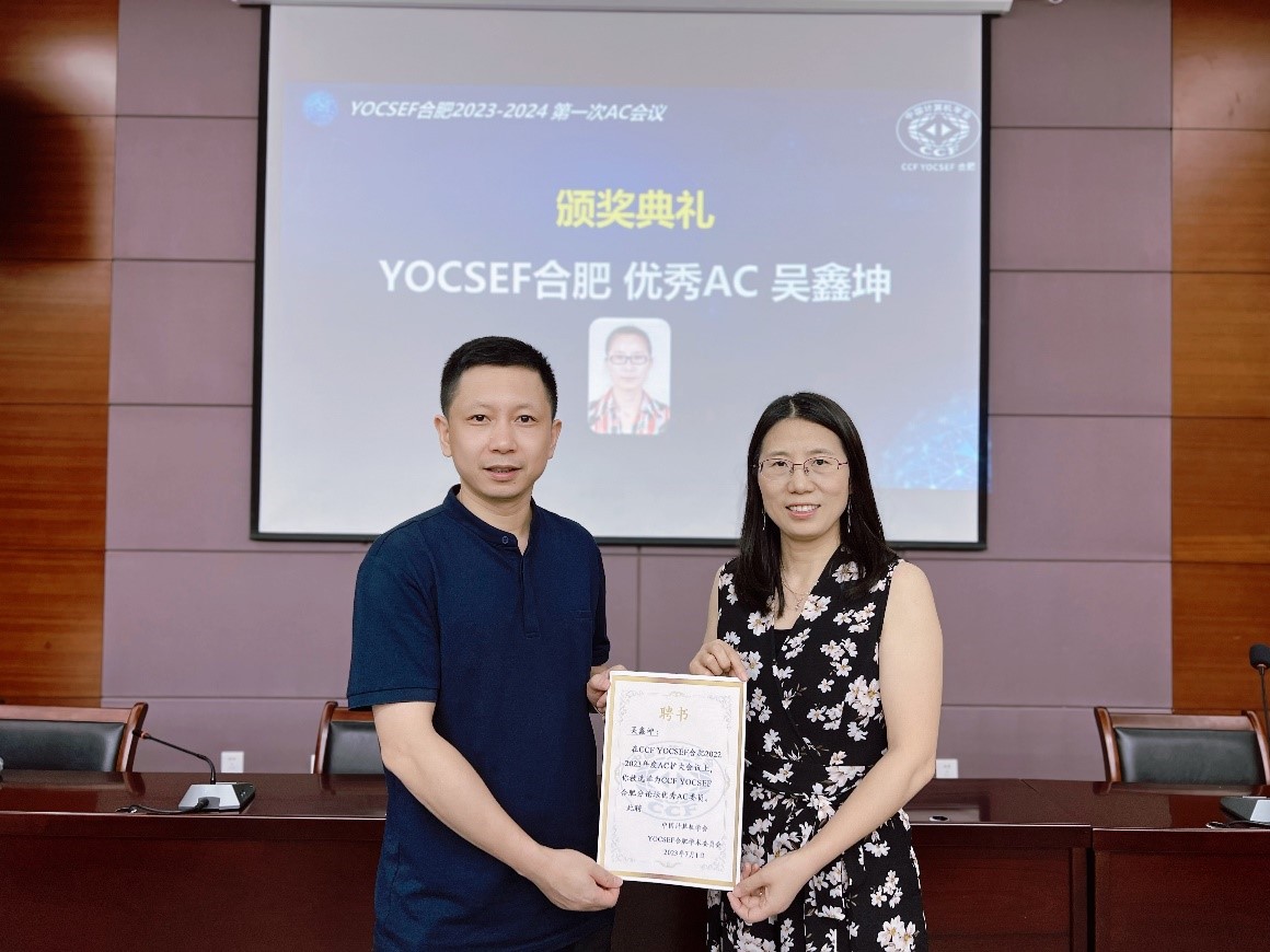 此次会议由YOCSEF合肥现任主席张高峰主持,会议内容包括五部分:CCF YOCSEF文化培训、2022-2023年度YOCSEF合肥工作总结与表彰、YOCSEF合肥换届仪式、2023-2024年度YOCSEF合肥工作规划以及AC毕业典礼和总结。