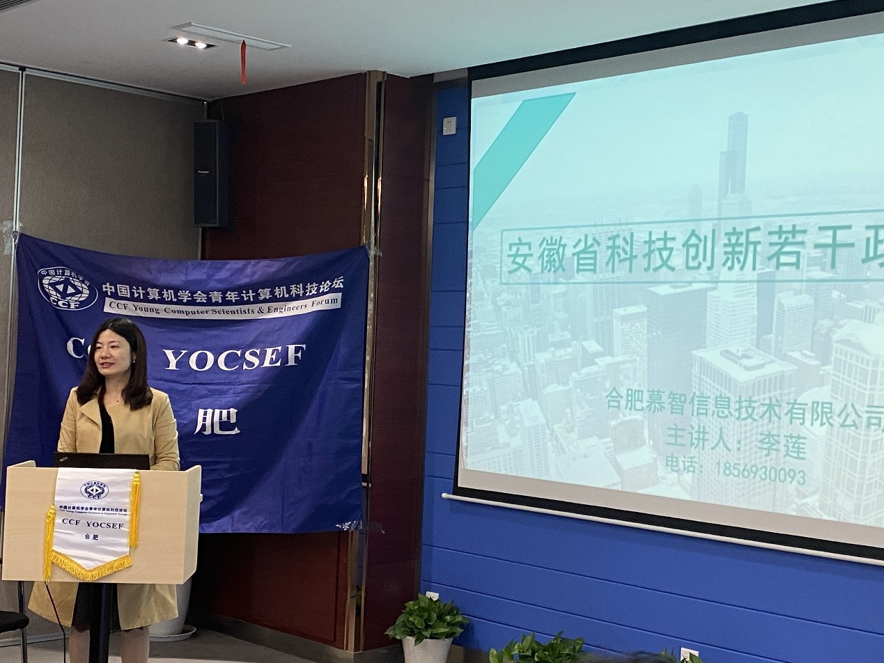 接下来,进入论坛的第一阶段引导发言阶段,由执行主席熊科主持。第一位引导发言嘉宾是来自合肥慕智信息技术有限公司的总经理李莲。李莲分别从重大关键技术攻关、科技人才团队创新创业、促进科技成果转化等三个方面,全面介绍了政府相关政策的支持强度、奖励政策和申请条件。并分享了在卡脖子等关键技术领域,企业创新、高校创新的协作和成果转化的途径。