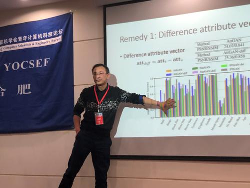 哈尔滨工业大学计算机学院教授、博士生导师左旺孟博士做题为基于多域视觉数据的图像增强与编辑的学术报告。首先,左教授介绍了基于多域视觉数据的图像增强与编辑。随着互联网的发展以及视觉感知、传输和分享技术的普及,越来越多的视觉任务开始考虑多域数据的结合和转换问题。生成式对抗网络作为一种新兴的无监督学习模型,在其中发挥着越来越重要的作用。左旺孟博士此次报告从风格迁移出发,围绕图像增强、填充与转换等任务,针对使用阶段是否存在成对的多域数据分别进行了详细的介绍。随之,介绍了当训练和使用阶段均存在成对的多域数据时,在引导深度图增强、引导人脸图像增强和图像智能填充等方面的进展。当训练和使用阶段不存在成对的多域数据时,以人脸属性编辑为例,介绍从特定编辑模型到通用任意编辑模型的发展过程。报告结束与参会人员就一些相关问题进行了深入探讨。