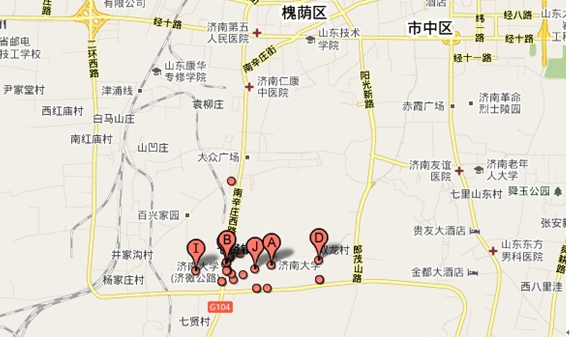 附:路线图(见下页,济南大学为图中标示为“B”处)。