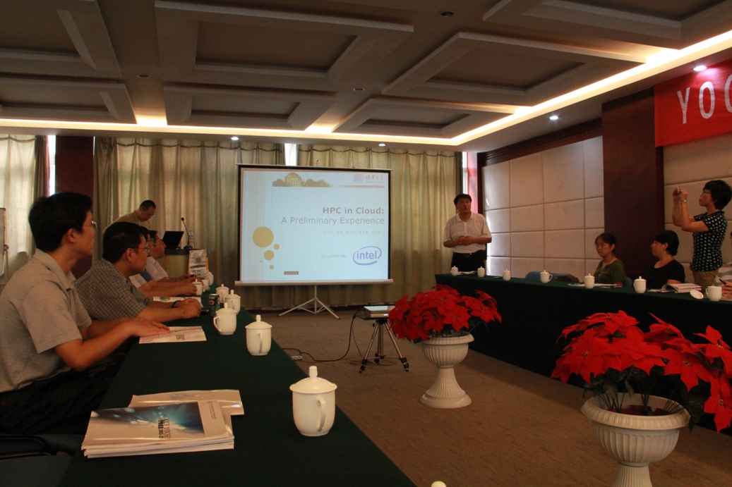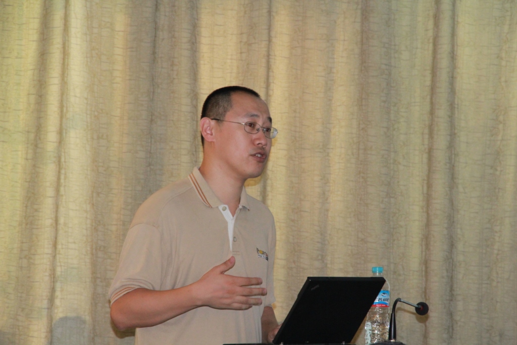 随后,文光主席做了“HPC in Cloud: A Preliminary Experience”的主题报告,介绍了清华大学计算机系高性能所在Amazon云上进行的一些高性能计算环境的研究工作。报告介绍了高性能计算技术遇到的问题和挑战,提出云计算平台为高性能计算的发展提高了一种全新的解决方案。文光主席深入介绍了在Amazon CCI (Cluster Compute Instance)平台上进行的一系列云计算平台测试过程,并从性能、可配置性和开销等方面展示了实验结果。山东大学计算机科学与技术学院杨承磊教授、李新副教授,浪潮(北京)电子信息产业有限公司产品研发部副总经理姚萃南等人对报告相关内容进行了提问,文光主席一一进行了解答。