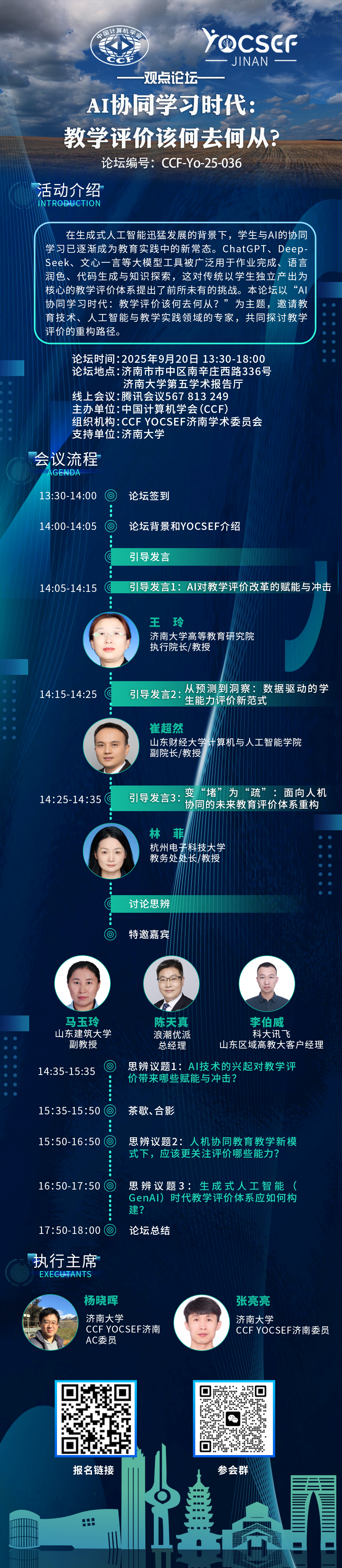 预告 | CCF YOCSEF济南观点论坛“AI协同学习时代:教学评价该何去何从?”