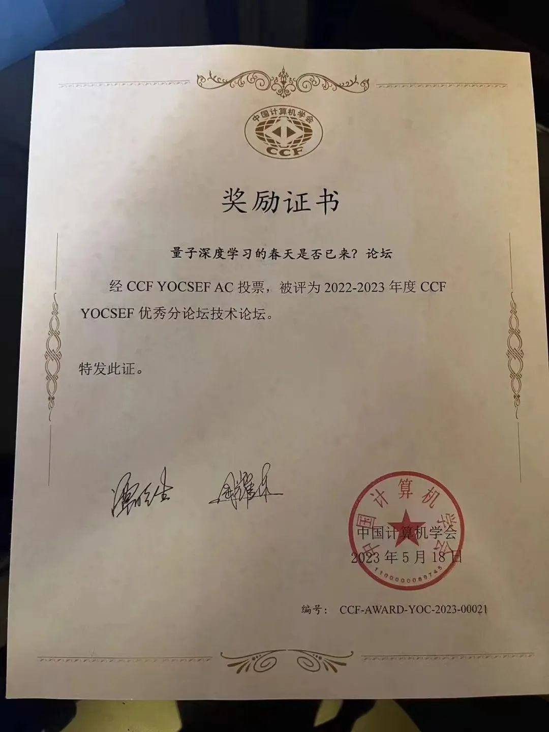祝贺《量子深度学习的春天是否已来?》荣获优秀技术论坛