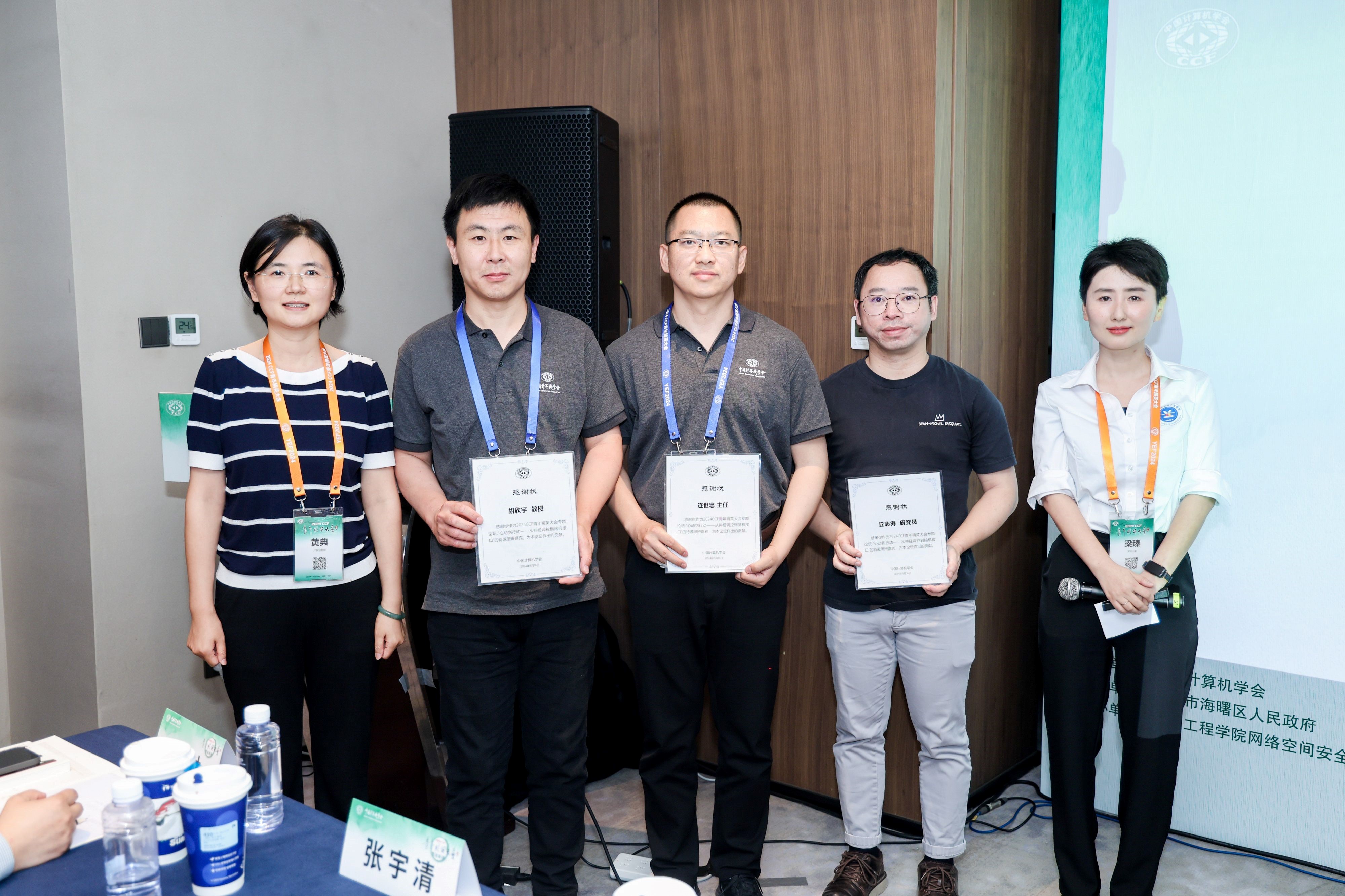想象一下,仅仅通过思考,就能够直接与外部世界进行互动,这是脑机接口技术所能带来的未来愿景。这种“心动”到“行动”的科技探索,已经从科幻小说的情节走向了现实的可能性。脑机接口不仅仅是神经调控的延伸,更是一种革命性的手段,通过解读大脑的神经信号来实现人类思想与机械行动的无缝转换。这一技术的进步不仅为残障人士提供了新的交互方式,也为未来的人机融合、增强现实等领域开辟了广阔的前景。在此背景下,2024年5月16日,中国计算机学会(CCF)2024年青年精英大会(YEF2024)《“心动”到“行动”-从神经调控到脑机接口》论坛在浙江宁波成功举办。本次论坛由CCF主办,青年计算机科技论坛(YOCSEF)深圳承办,YOCSEF太原和CCF人机交互专委协办。YOCSEF深圳24-25年度学术秘书/深圳大学特聘研究员梁臻、YOCSEF深圳24-25年度主席/广东省智能科学与技术研究院副研究员黄典共同担任执行主席。本次论坛探讨了神经调控的最新研究进展、脑机接口技术面临的挑战与机遇,以及这一切如何重塑未来医疗健康、辅助技术和人类能力的边界。