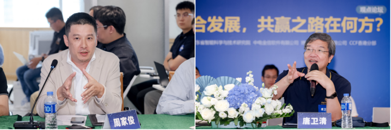 袁春教授围绕“大湾区信息融合发展共赢之路讨论”作引导发言。大湾区信息技术融合可以从学术研究开始,建立了联合研究中心以及开展联合项目、积极参加CCF的活动,推进学生间的学习交流。他认为,大湾区的融合路径是:共同的兴趣、共同的志向,找到对的人,实现传承。
