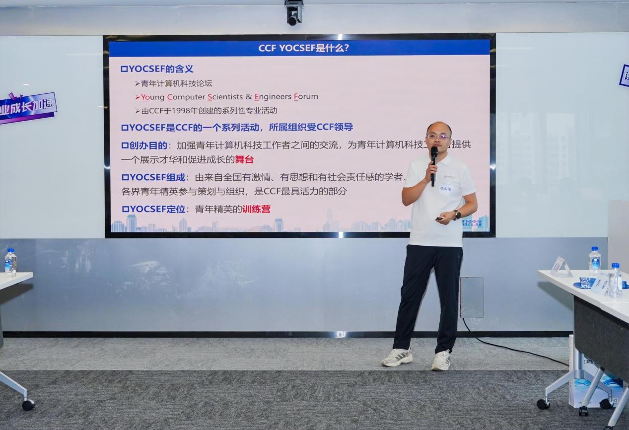 会议尾声,CCF YOCSEF深圳主席漆舒汉作总结致辞。他感谢各位嘉宾带来的精彩观点与现场的热烈研讨,也对英特尔大湾区科技创新中心、深圳市和合联众信息科技有限公司、上海睿赛德电子科技有限公司对本论坛活动的支持,表示了由衷的感谢。他提炼出本次讨论的核心启示:产教融合并非简单对接,而是一场“快”与“慢”的辩证艺术。高校需坚守育人根基的“慢功夫”,同时通过机制创新实现对产业需求的“快响应”,这才是破解人才困境的根本路径。同时,漆舒汉也介绍了CCF YOCSEF深圳后续的系列活动,也向各位嘉宾发出了邀请。