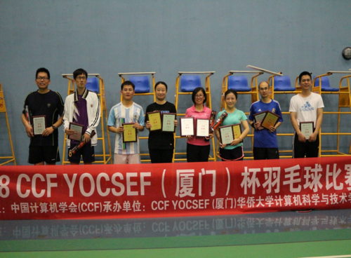 2018年11月15日,由CCF主办,CCF YOCSEF厦门AC策划、华侨大学计算机科学与技术学院承办的Club——“YOCSFE(厦门)杯羽毛球比赛”在华侨大学厦门校区隆重举行。本次活动由CCF YOCSEF厦门主席王田、委员李静担任执行主席。比赛由男子单打、女子单打和男女混双赛三部分组成。参加比赛的人员还有王靖、王宗跃、雷庆、李静等YOCSEF委员,以及来自华侨大学计算机学院和集美大学的老师。