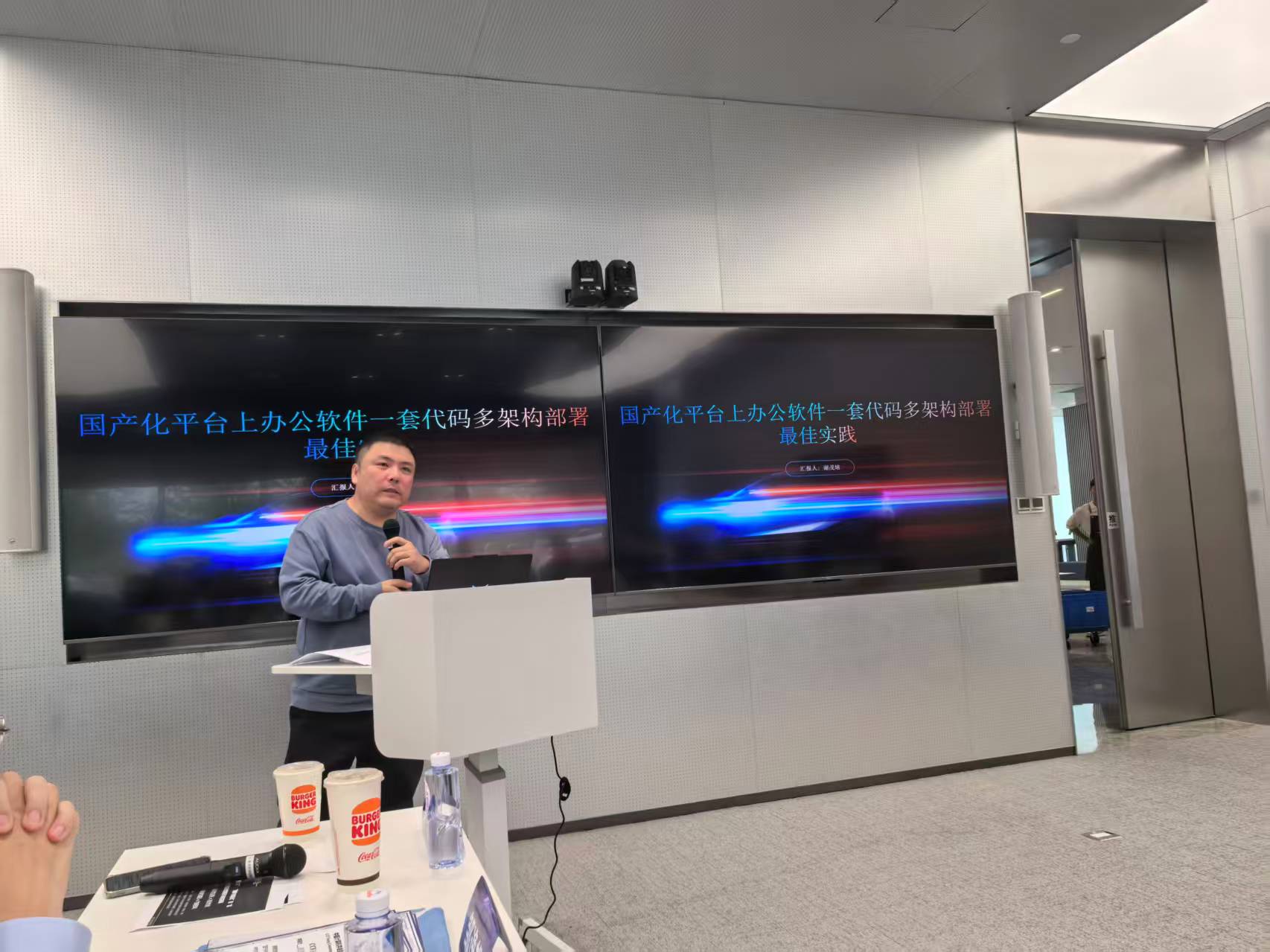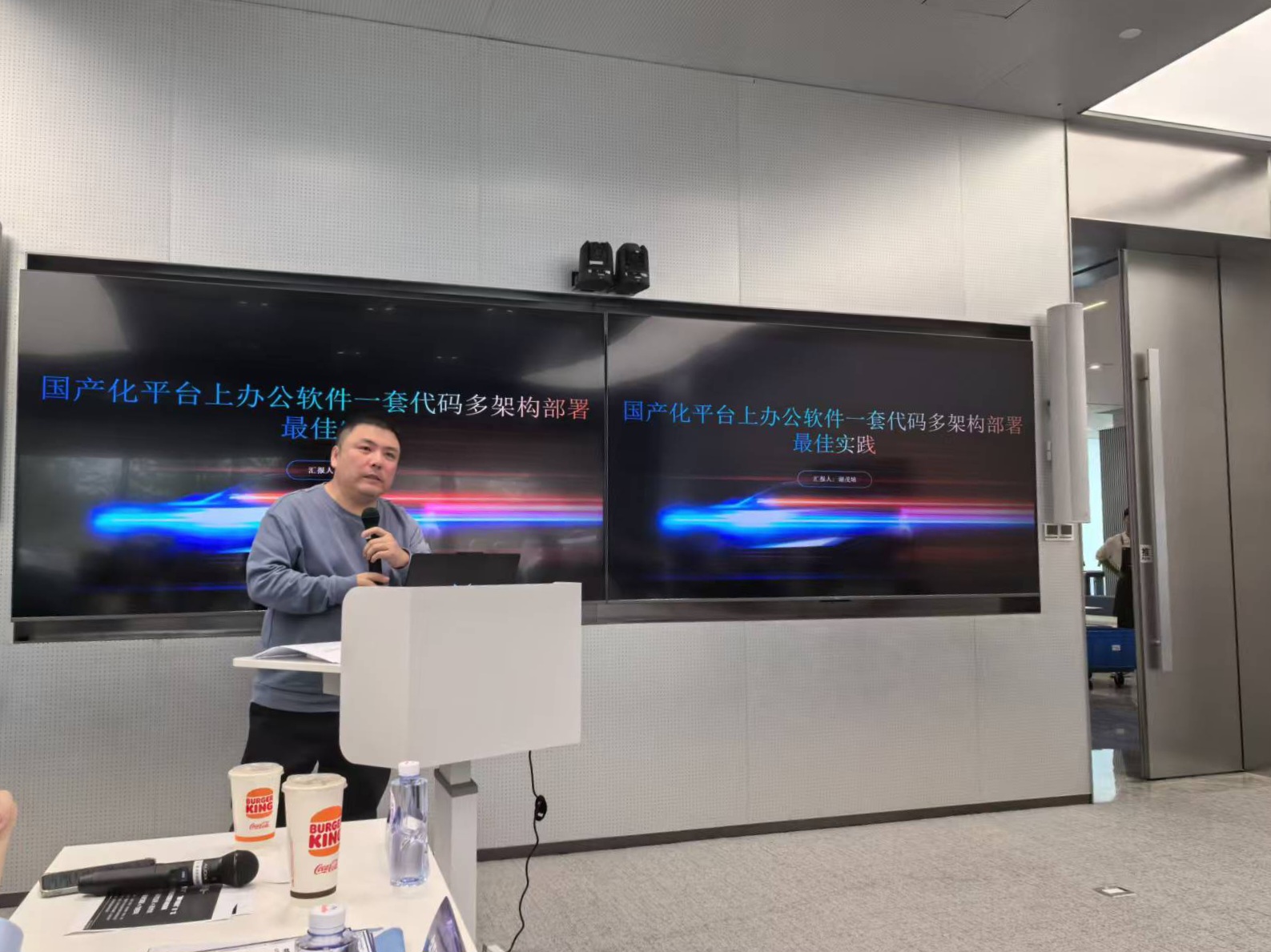 引导发言三由金山办公Office产研架构师谢茂培带来,题目是《国产化平台上办公软件一套代码多架构部署最佳实践》,主要内容为:在多架构并存,国产化加速,企业求新求变的背景下,金山使用自主的开发实现一套代码多架构部署,使用主干模式、班车制、流水线设计实现开关的协同模式,并使用海量适配测试进行自动化能力的测试。