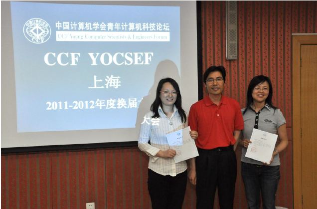 周文、鸣宇荣获CCF YOCSEF优秀学术秘书称号,晓亮颁发证书