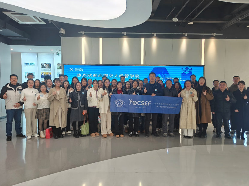 2026年1月9日下午,CCF YOCSEF成都AC委员刘盾及多位教师带领西南交通大学经济管理学院部分非全日制同学,共同走进科大讯飞四川公司开展参访交流,近距离探访人工智能龙头企业的技术实力与产业赋能实践。
