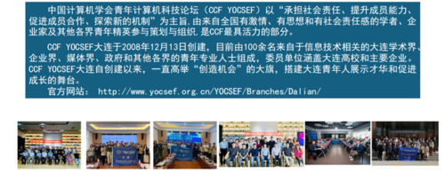 自2008年12月成立以来,CCF YOCSEF大连分论坛(以下简称YOCSEF大连)已走过十七年的发展历程,成为中国计算机学会(CCF)在东北地区的重要学术与技术交流平台。作为CCF在大连的青年科技论坛,YOCSEF大连致力于为青年科技人才提供展示与交流的舞台,推动学术界与产业界的深度融合,促进科技创新与社会发展。