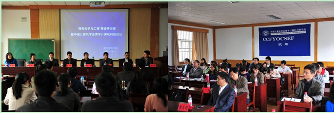 10月29日上午,由中国计算机学会YOCSEF杭州分论坛举办的 “服务科学与工程”论坛在湖州师范学院学术报告厅顺利召开。此次论坛邀请了政府、企业和高校代表共同研讨服务科学与工程的发展与应用现状和前景。论坛由YOCSEF杭州AC委员、湖州师范学院副院长蒋云良教授主持,湖州师范学院信息与工程学院副院长顾永跟教授担任执行主席,湖州市人事局陈忠民处长、杭州师范大学国际服务工程学院副院长袁贞明教授、湖州埃慕计算机技术有限公司总经理阪田政则先生、杭州市计算机协会秘书长徐玉清女士、快威科技集团有限公司副总裁陆亚萍女士等分别作为论坛嘉宾及特邀报告专家出席。YOCSEF杭州副主席张文宇、委员张帅、俞凯、楼俊钢、彭浩宇等10余人参加了此次论坛活动,湖州师范学院从事服务科学的部分师生也参加了此次论坛。