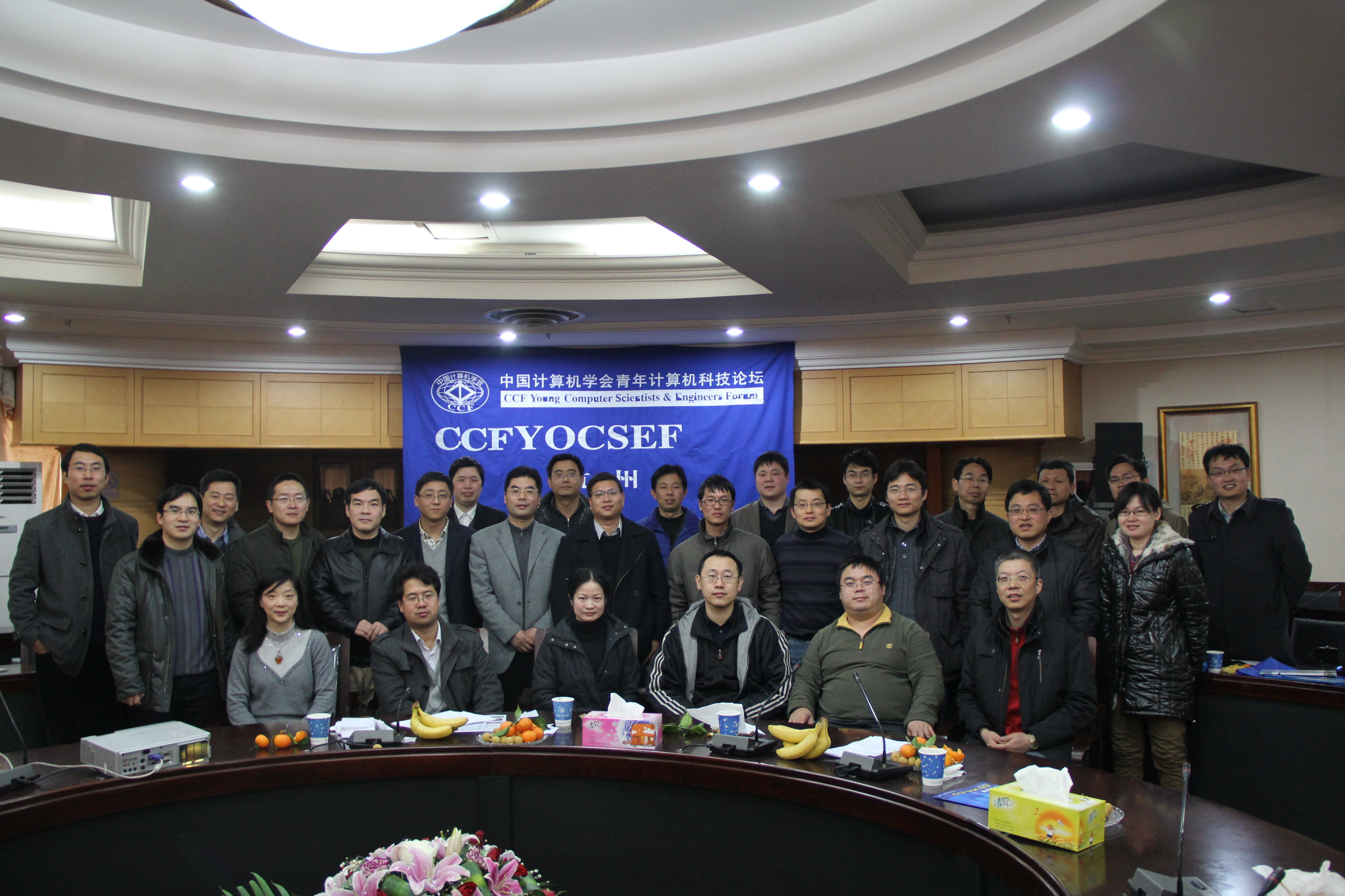 2011年12月25日,CCF YOCSEF杭州2012-2013年度换届选举会议在浙江工业大学举行。本次会议由总坛责任AC委员晓如和杭州分论坛现任主席姜波联袂主持。总坛现任主席文光、前任主席云泉以及总部AC佳俊亲临现场,体现了对杭州分论坛工作的高度重视和大力支持。杭州分论坛的AC委员、部分荣誉委员和新增委员参加了此次会议。
