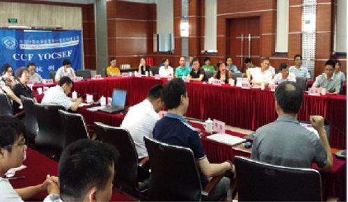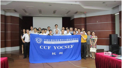 2014年6月21日下午,CCF YOCSEF杭州联合了CCF 杭州分部、杭州市计算机学会、杭州市科协在杭州市科技交流馆(延安路489号)3楼多功能厅举办“智慧社区——打造生活E时代”报告会,暨“杭州智慧社区发展青年科技论坛”。CCF常务理事、中国计量学院计算机软件研究所所长陆慧娟教授,CCF理事、CCF YOCSEF总部AC委员卜佳俊,杭州市科协学会部部长沈亮,杭州市经信委原信息化推进处处长童汉清,杭州市计算机学会副理事长徐玉清,杭州分论坛的AC委员董天阳、俞凯、王雪峰,杭州分论坛的其他委员、在杭高校和各地企业代表等40余人出席了会议。会议由CCF YOCSEF杭州主席董天阳和副主席俞凯共同主持。