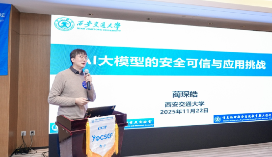 蔺琛皓(西安交通大学网络空间安全学院教授),从国内外典型的安全事件出发,系统梳理了大模型在越狱绕过、内容伪造、幻觉与偏见等方面的风险,指出随着大模型大规模接入社会生产与公共服务场景,这些风险正快速传导至真实业务系统与社会治理体系中。从应对角度,他分享了团队在文本与文生图越狱、AIGC图像/视频真伪鉴别、视觉语言模型幻觉可解释溯源、公平性自动化评估以及移动端多模态AI Agent 攻击与防护等方面的最新研究成果。他强调,构建“可信可控”的大模型安全评估体系,已经成为未来大模型应用落地的关键前提。