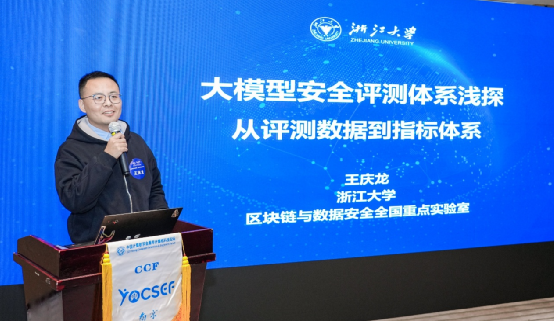 王庆龙(浙江大学区块链与数据安全全国重点实验室研究员)围绕国内外前沿的安全框架,指出当前安全评测在风险维度覆盖、评测数据质量与代表性、指标体系统一性等方面仍存在系统性不足。他从评测维度、评测数据、评测指标与评测方法四个层面展开分析,呼吁构建兼顾法规要求与本土语境的系统化安全评测框架,通过高质量测试数据与可解释、可量化的指标体系,把“能评、会评、评得准”建设为连接监管需求、模型优化与产业落地的关键支点。