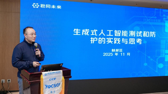 林昶廷(杭州君同未来科技有限责任公司联合创始人兼 COO )则从政务、能源等典型场景的实战案例出发,概括了大模型在提示词注入、数据泄露、智能体误用、幻觉以及具身智能安全等方面的全生命周期风险。他基于OWASP 等业界框架及国内相关标准,提出应以“全生命周期风险视角+ 标准化评测与防护体系”来系统应对场景化风险,将测试与防护一体化建设,作为支撑大模型安全落地与行业治理能力提升的重要抓手。