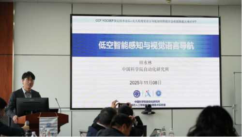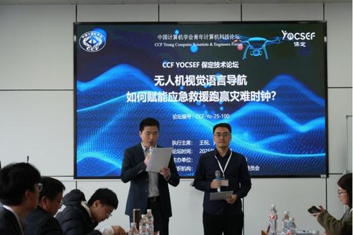 2025年11月8日,中国计算机学会(CCF)主办的“无人机视觉语言导航如何赋能应急救援跑赢灾难时钟?”技术论坛在华北电力大学自动化系顺利召开。论坛由中国计算机学会青年计算机科技论坛(CCF YOCSEF)保定学术委员会组织举办,YOCSEF保定主席王祝(华北电力大学)、副主席尹红涛(北京青城博雅)担任执行主席。来自高校、科研院所及企业等共计二十余个单位的五十余位专家共同探讨无人机视觉语言导航技术如何助力应急救援。
