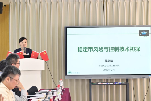 在引导发言环节,首先由中山大学教授吴嘉婧以“稳定币风险与控制技术初探”为题,从软件工程与底层代码的视角出发,深度剖析了稳定币在监管合规与技术安全面临的双重挑战。发言详细梳理了全球主要经济体及中国香港对稳定币从原则监管向牌照化治理的演进趋势,提出“系统层-市场层-生态层”的三维风险分析框架。在系统层,聚焦代码逻辑缺陷与中心化治理的透明度问题;在市场层,探讨算法失灵、预言机错误导致的脱锚风险及价格操纵;在生态层,则揭示了利用非法OTC平台进行洗钱与诈骗的黑色产业链。该研究通过层层拆解技术架构与应用场景,为识别新型金融犯罪与构建更严密的监管防线提供了坚实的技术支撑。