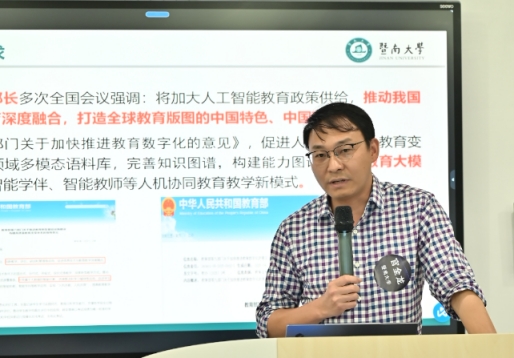 引导报告环节,三位行业专家从技术实践、场景应用、与理论研究等角度切入,分享了对人工智能赋能教育的前沿观察与思考。暨南大学官全龙教授以“教育知识表征与推荐技术应用探索”为题,分享了教育知识图谱构建、多模态知识表征等核心技术,结合智慧教育场景详解个性化学习资源精准推荐的实践路径,介绍了相关科研成果与案例,为教育数字化转型与智能导学系统研发提供了可行技术思路。
