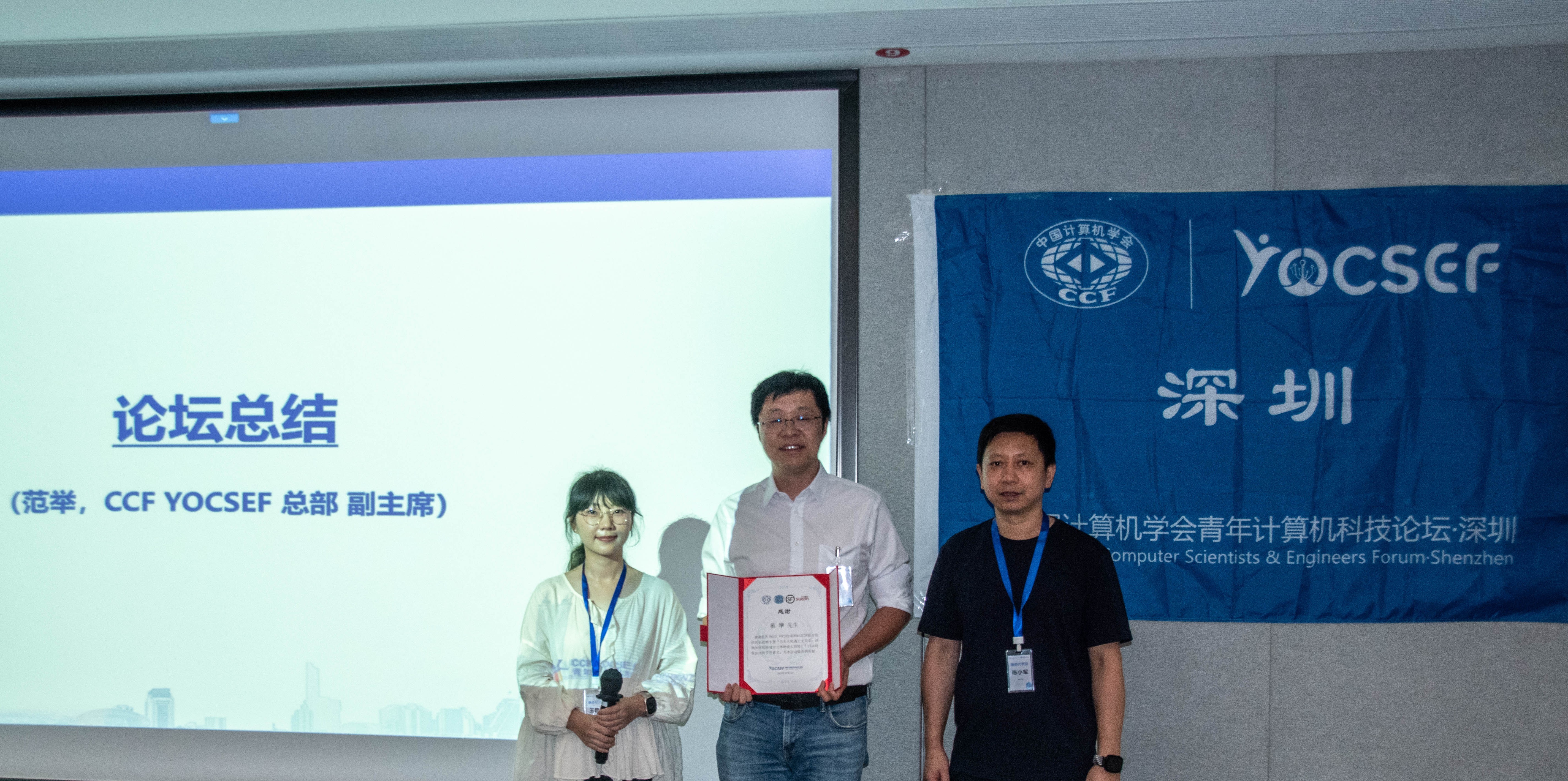 论坛最后,CCF YOCSEF深圳主席、哈工大深圳教授漆舒汉,CCF YOCSEF总部副主席、中国人民大学教授范举分别作总结发言。漆舒汉指出,本次活动一是为高校、企业、政府搭建了对话平台,精准对接技术需求与研究方向;二是聚焦“感知、传输、算力”痛点,形成可落地思路建议;三是借实地参观让学术研究贴近产业实际。未来YOCSEF深圳将围绕低空经济、智慧物流,组织更多产学研融合活动。