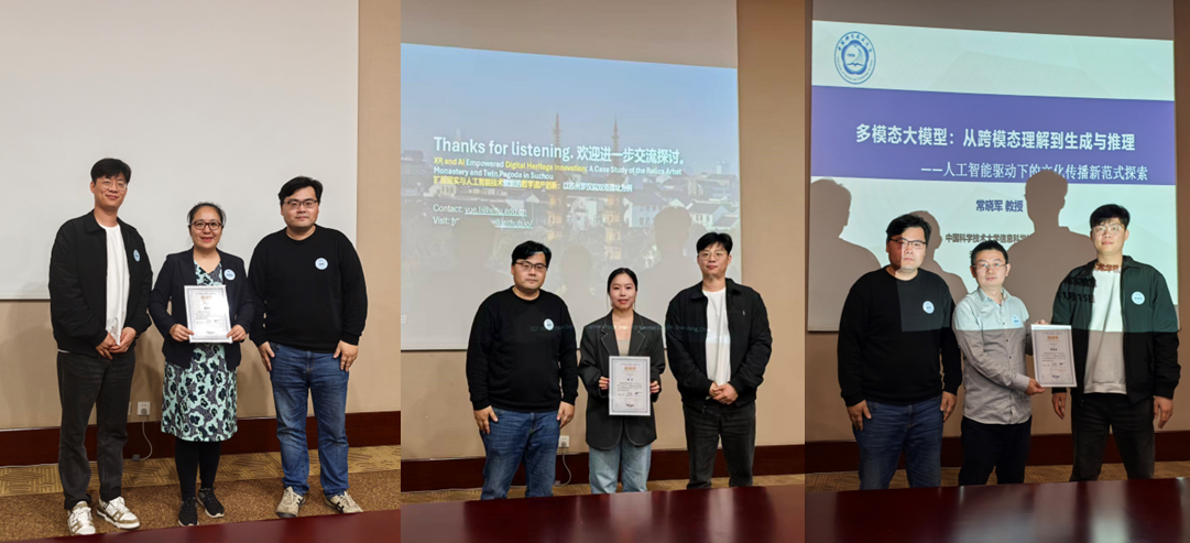 在引导发言环节,三位嘉宾分别围绕数字旅游空间、数字遗产创新与多模态大模型展开专题报告。黄潇婷教授从旅游者行为出发,提出“行为感知—规律挖掘—空间生成—价值创造”的数字旅游空间构建闭环,并结合VR实验成果展示行为规律在空间设计中的关键作用。李月博士以苏州罗汉院双塔遗址为例,深入剖析扩展现实与人工智能在数字遗产保护与创新中的应用逻辑与技术架构,强调人机交互与沉浸式体验在文化传承中的价值。常晓军教授系统阐述多模态大模型在跨模态理解、生成与推理方面的最新进展,提出其作为文化传播新范式的潜力与实现路径。