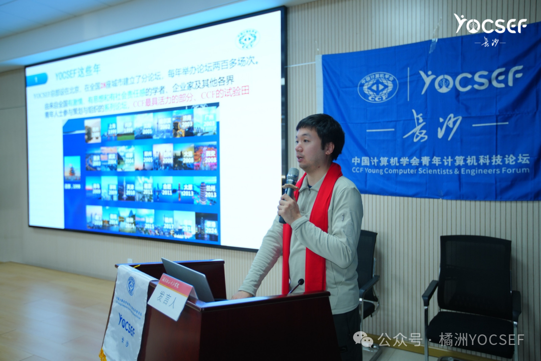 当日下午13时30分,CCF YOCSEF长沙2026-2027换届选举会议准时拉开帷幕。会议在庄重热烈的氛围中正式开启,现任主席纪军刚首先代表长沙分论坛发表致辞。他向长期以来关心支持长沙分论坛发展的总部及各兄弟分论坛表达了诚挚谢意,并对全体AC委员一年来的辛勤付出与卓越贡献给予了高度肯定。他表示,正是全员的凝心聚力,才铸就了长沙分论坛今日的活力与辉煌。随后,YOCSEF长沙老主席邝祝芳代表历任老主席发言。他深情回顾了YOCSEF长沙从创立之初筚路蓝缕,到如今蓬勃发展的峥嵘岁月。邝祝芳指出,YOCSEF长沙始终秉持开放包容的学术氛围、务实求真的技术研讨精神以及深厚真挚的情感联结,已成为湖南省计算机领域青年骨干人才的高地。他勉励新老委员不忘初心,继续擦亮长沙分论坛的品牌名片。在文化培训环节,总部AC委员邸欣晨为与会成员带来了一场深刻的YOCSEF文化专题培训。邸欣晨系统阐释了YOCSEF“承担社会责任、提升成员能力”的核心价值观及独特的论坛治理模式。通过“常听常新”的深度解读,与会成员对YOCSEF精神的理解得到了进一步升华。邸欣晨充分肯定了长沙分论坛在过往工作中展现出的活跃度与创新探索,并寄语长沙分论坛在未来继续发挥区域引领作用,为YOCSEF大家庭贡献更多“长沙智慧”。会议的核心环节,现任主席纪军刚作年度中期工作汇报。报告紧扣“人、事、文化”三个维度,对过去半年的工作进行了系统梳理与总结:
