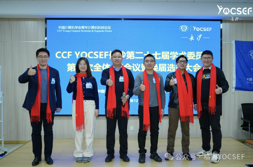 总部与兄弟分论坛成员、老主席们对选举的成功举行和新任主席团会议成员的产生表示祝贺。CCF YOCSEF总部候任主席范举、现任副主席金一、候任副主席陈果、学术秘书陈昊、上届副主席陈小军、长沙分论坛联系AC委员邸欣晨、长沙老主席陈荣茂分别发言。总部成员结合最新工作方向,对长沙分论坛新一届委员会提出了具体期望,在特色活动打造、文化传承发扬、优秀成果输出等方面持续发力,为YOCSEF整体生态建设贡献更多“长沙智慧”与“长沙经验”。老主席代表陈荣茂则回顾了分论坛发展史上的关键节点与精神脉络,勉励新一届委员会要珍惜平台、勇于担当。在过程中实现更大价值,将YOCSEF长沙的旗帜更高举起。至此,CCF YOCSEF长沙2026-2027届学术委员会换届选举活动全部议程顺利完成。本次活动成功实现了新老交替与薪火相传的使命,为未来的持续发展奠定了坚实的基础、明晰了行动方向。在CCF YOCSEF总部和全国各兄弟分论坛的大力支持和关心帮助下,本次换届选举活动取得了圆满成功。CCF YOCSEF长沙学术委员会将以韶山精神为炬,引湘江后浪奔涌,在数智时代激荡属于湖湘青年的创新浪潮。活动在热烈、充满期许的氛围中圆满落幕。CCF YOCSEF长沙AC委员的选举结果需总部审核批准后生效。