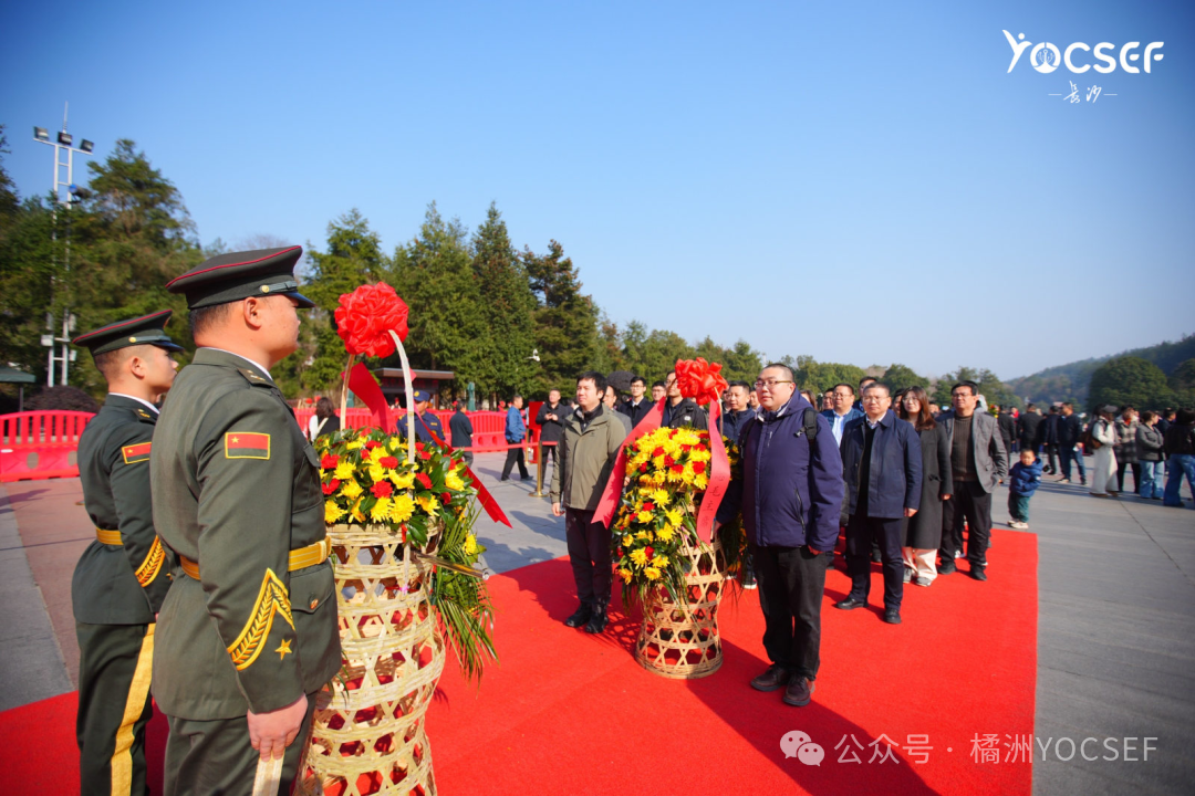 毛泽东同志铜像广场,松柏苍翠,庄严肃穆。当日上午,全体参会成员怀着崇敬的心情,在此开展了特色红色CLUB活动。在毛泽东同志铜像前,CCF YOCSEF代表团整齐列队。两名代表稳步抬起花篮,将其敬献于铜像基座之上。全体人员神情凝重,三鞠躬致敬,表达对伟人的深切缅怀与无限敬仰。随后,队伍绕行铜像一周,在瞻仰中追忆峥嵘岁月,感悟革命精神。仪式最后,全体成员在铜像前合影留念,定格了这一庄重而神圣的历史瞬间。