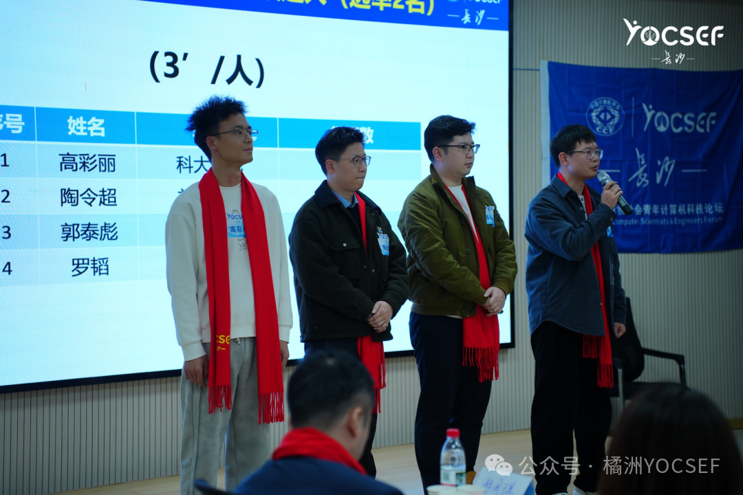 随后,会议进入述职评议环节。主席会议成员及全体AC委员依次登台,围绕个人任期内的履职情况、贡献成效及自我反思进行了详细汇报。汇报结束后,全体AC委员依据严谨的工作表现指标进行了互评。这一环节不仅是对过去工作的“体检”,更是对未来工作的“把脉”。互评结束后,与会成员在茶歇期间进行了自由而深入的交流。通过此次系统的总结回顾与民主评议,CCF YOCSEF长沙进一步统一了思想,凝聚了共识,为新一届学术委员会的顺利诞生及未来工作的开展奠定了坚实的基础。